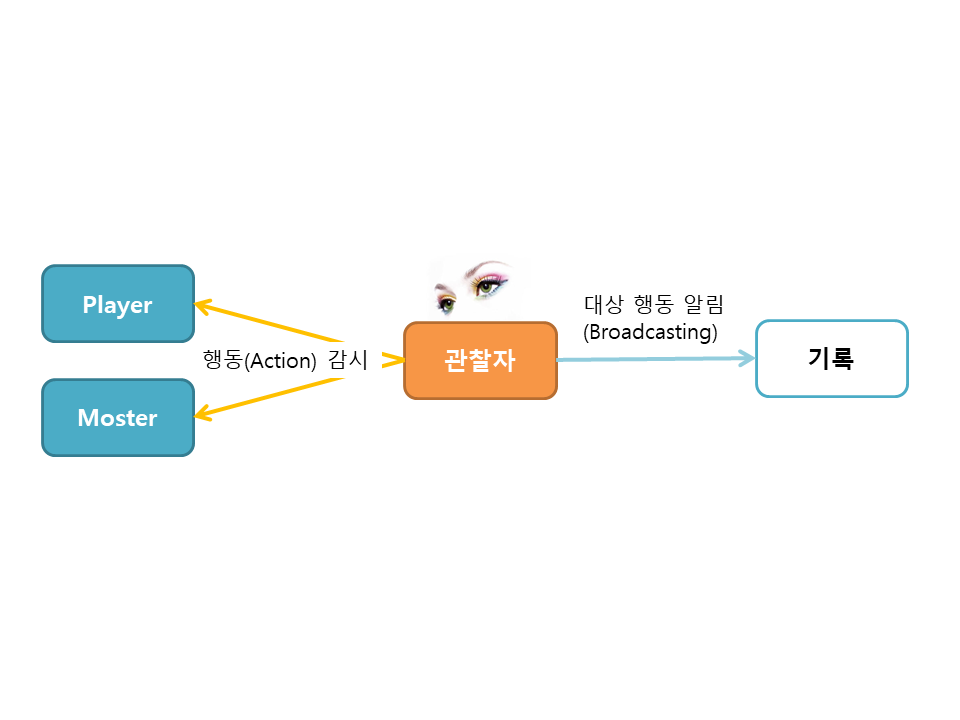 - 어떠한 한 행위에 대한 보고를 객체마다 일일이 참조해주지 않고 관찰자에게 구독하고 있으면 된다.