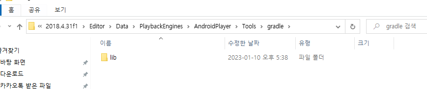 (윈도우OS : C:\Program Files\Unity\Hub\Editor\2018.4.31f1\Editor\Data\PlaybackEngines\AndroidPlayer\Tools\gradle)