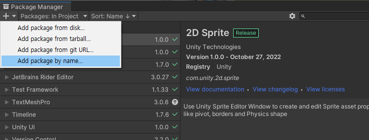 "com.unity.nuget.newtonsoft-json"를 추가하고 설치하면 됩니다.