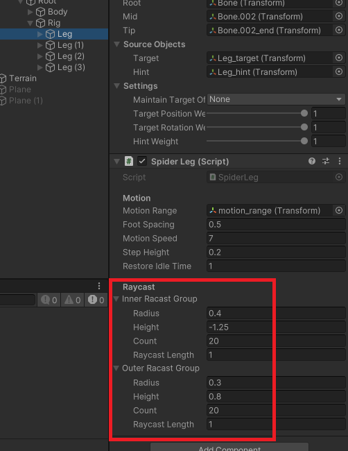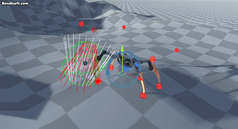 위의 그림과 같이 실제로는 각 다리마다 Raycast를 통해서 확이하여, 제일 적절한 위치로 다리를 움직입니다.