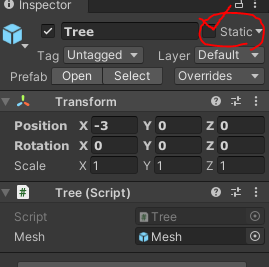참고: 유니티 정적 게임 오브젝트 - https://docs.unity3d.com/kr/530/Manual/StaticObjects.html
