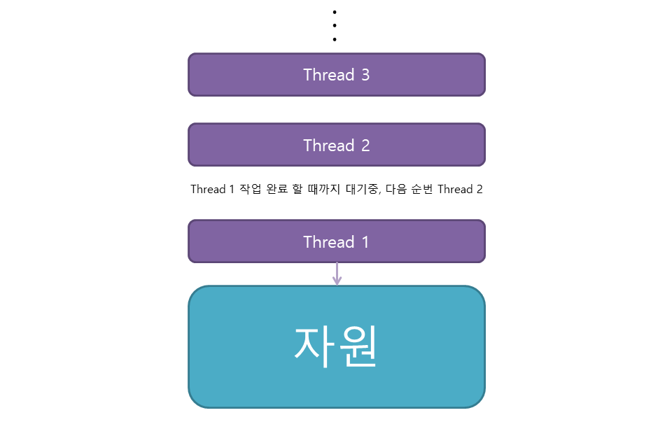 뮤텍스는 기본적으로 하나의 자원을 순차적으로 사용하도록 요구하는 구조입니다. 쓰레드1, 쓰레드2, 쓰레드3 ... 등등 여러 쓰레드가 한 곳을 가리킨다면 순서대로 연산이 완료될 때까지 기다렸다가 순서를 넘겨주는 방식입니다.