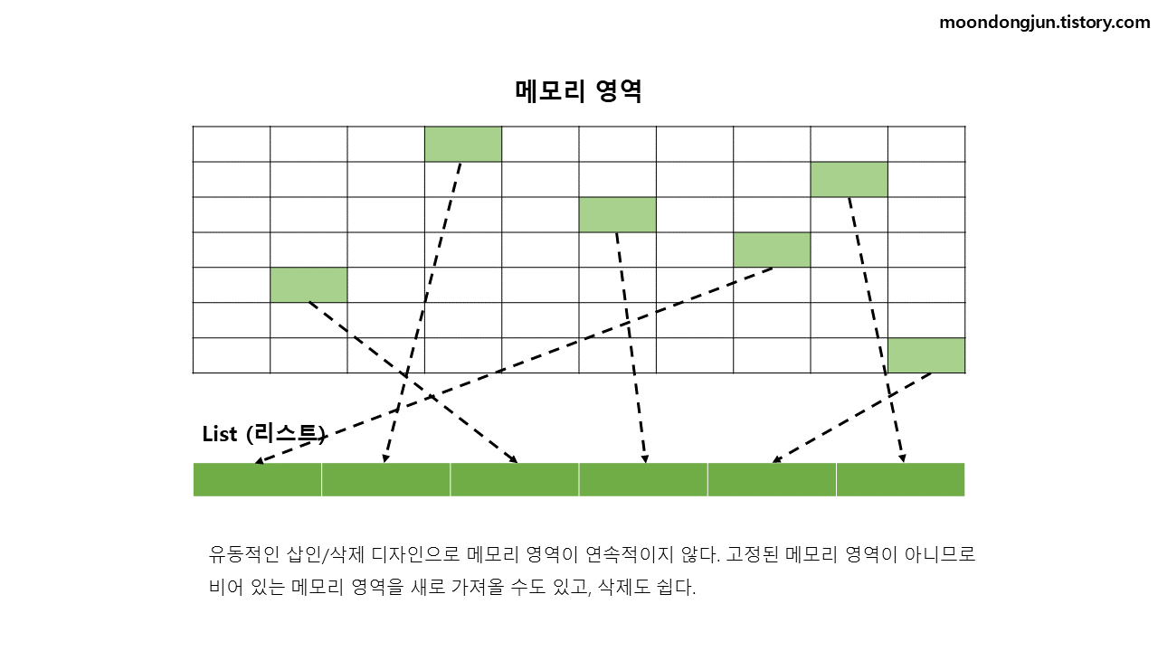 - 삽입/삭제 행위가 자주 사용되는 동적인 데이터 타입에 어울린다.