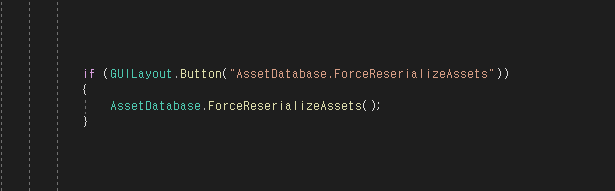 아래와 같이 ForceReserializeAssets()을 호출하면 프로젝트 내의 모든 에셋 갱신을 시도합니다.